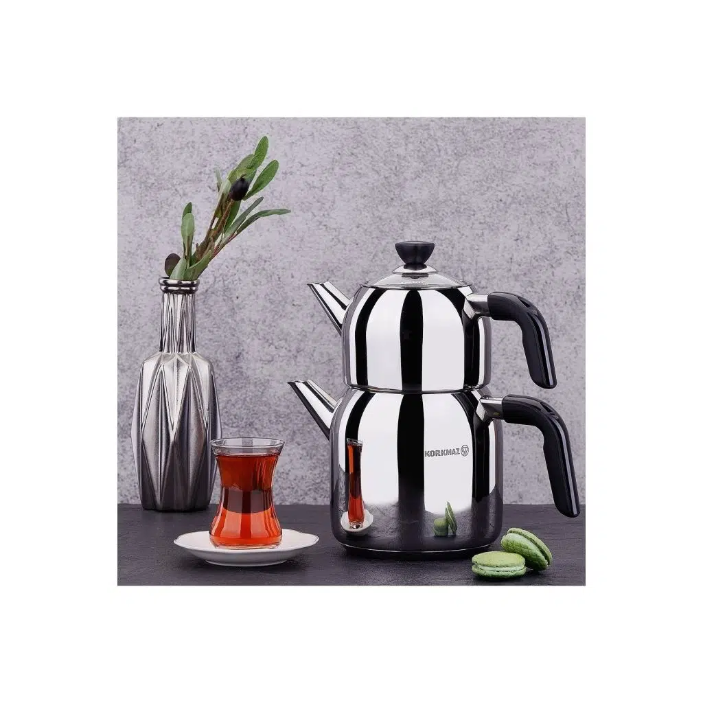 Demlik Hacmi: 0.9 lt Alt Hacim: 2 lt 18/10 Cr-Ni paslanmaz çelik Özel tasarım, el yakmayan bakalit kulp ve tepeler Üç kat tripleks kapsül taba Parlaklığını koruyan özenle polisajlanmış dış yüzeyler Isıya dayanıklı cam kapak Bulaşık makinasında temizlenebilir. Kappa çaydanlık takımı ergonomik, el yakmayan bakalit sapları ile kullanım kolaylığı sağlarken estetik demliği ile mutfağınızın şıklığını tamamlıyor. İndüksiyon dahil her türlü ocak üzerinde en yüksek ısı transferi sağlayan SOLAR BASE sistemi sayesinde maksimum zaman ve enerji tasarrufu sağlar.