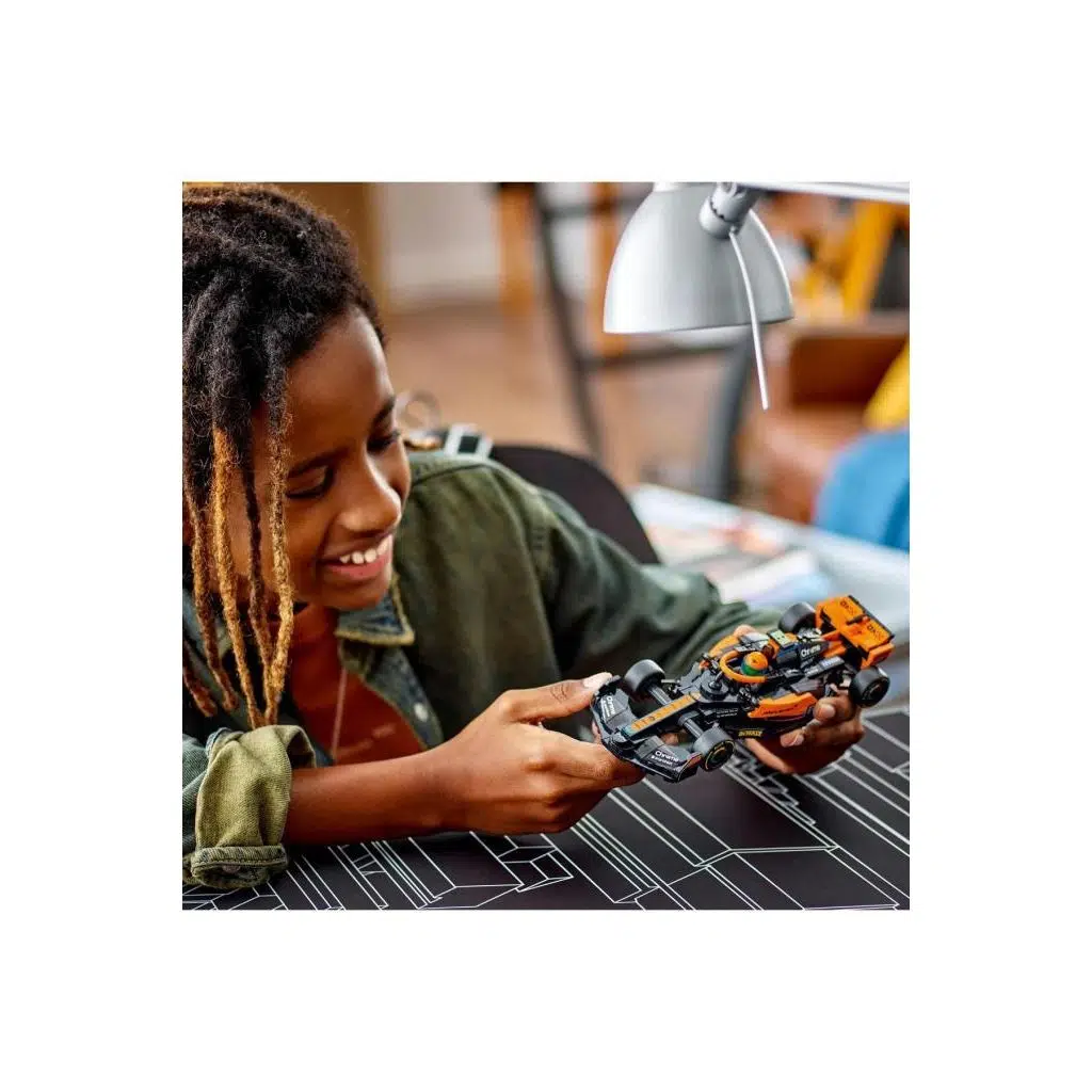 9 yaş ve üzeri erkek ve kız çocuklar, LEGO® Speed Champions 2023 McLaren Formula 1 Yarış Arabası (76919) oyuncak aracını koleksiyonlarına katabilir, inşa edebilir ve sergileyebilir. Çocuklar için bu şık F1 oyuncak arabası, McLaren Racing’in 60. yıl dönümünü gururla kutlayan ve 2023 Formula Bir Dünya Şampiyonası’nda yarışan gerçek yarış arabasının simgeleşmiş tasarım detaylarından bazılarını taşır. McLaren araç modeli, çok sayıda gerçekçi özellik içerir: Siyah ve turuncu gövde, takım sponsoru logoları, Pirelli baskılı lastikler ve turuncu emniyet halkası. İnşa edilebilen araba seti, ayrıca çocukların direksiyona oturtarak heyecan verici yarış oyunları oynaması için bir sürücü minifigürüyle birlikte gelir. LEGO Speed Champions setleriyle çocuklar ve araba tutkunları, dünyanın en ünlü araçlarından bazılarının model versiyonlarını inşa edebilir. LEGO yapım parçalarıyla karakteristik detaylar taşıyan kaliteli modeller yapmaktan büyük heyecan duyacaklar. Her bir oyuncak araba, size ve çocuğunuza kolay ve sezgisel bir yapı macerasında yol gösteren LEGO Builder uygulamasıyla yapılabilir.